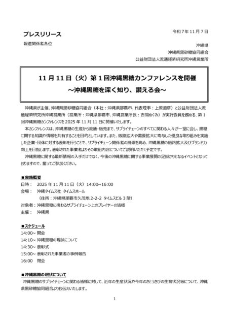 沖縄黒糖カンファレンスプレスリリース